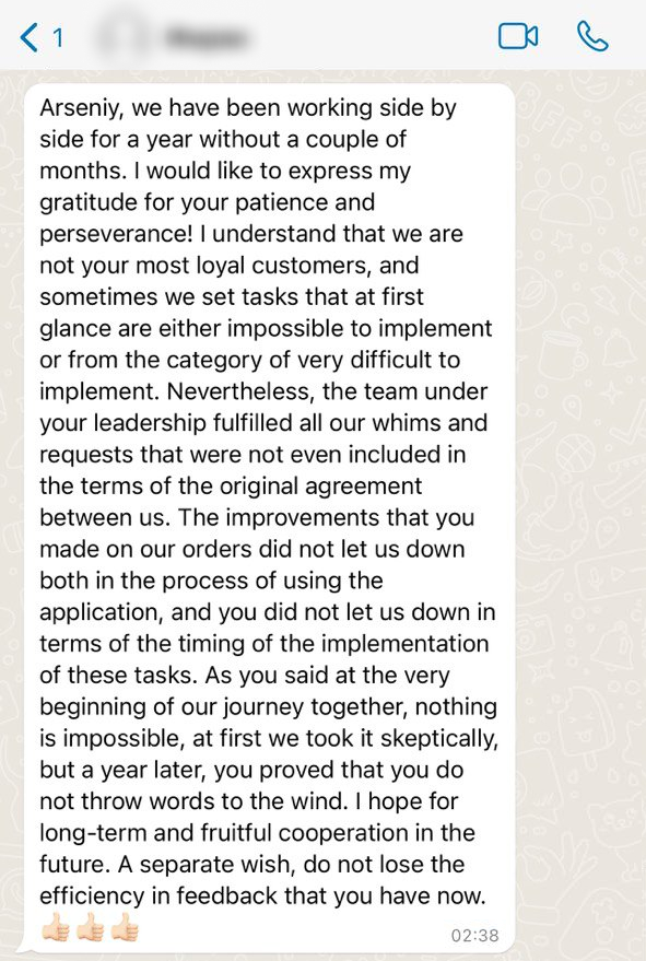 • We take into account the priority of tasks: first of all, we implement what is most important for you